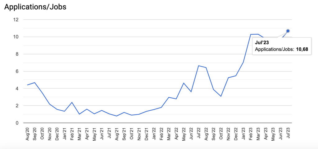 У розробників ситуація краща, проте лише в бекенді: серед PHP спеціалістів 15 пошукачів на одне місце, Java — 38, Node.js — 30. У фронтенді ще пекельніше, чим у тестувальників: 112 кандидатів на одну вакансію.