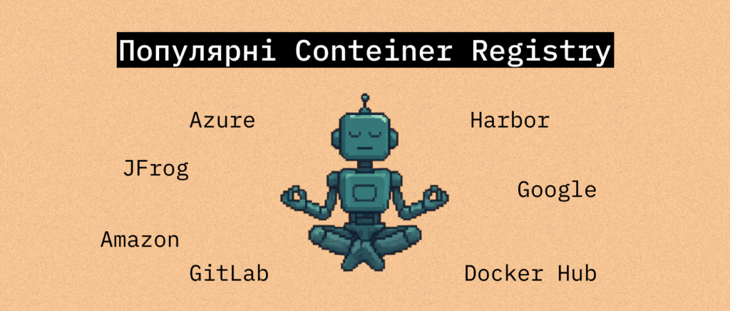 Для публічних образів — Docker Hub, GHCR. Для приватних корпоративних проєктів — AWS ECR, Azure Container Registry та Quay.io.