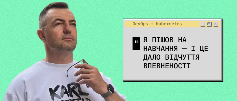 Я зрозумів, що вигорів на теперішній посаді. Працюючи тут вже давно, для мене все стало легким і перестало бути цікавим. Коли з’являється певний виклик, це заряджає. Наприклад, під час вивчення Kubernetes на курсі я міг днями не виходити з дому, бо мені було цікаво. Не так легко змусити дорослу людину робити щось безплатно — мені хотілось розібратись і зробити щось справді складне для себе.